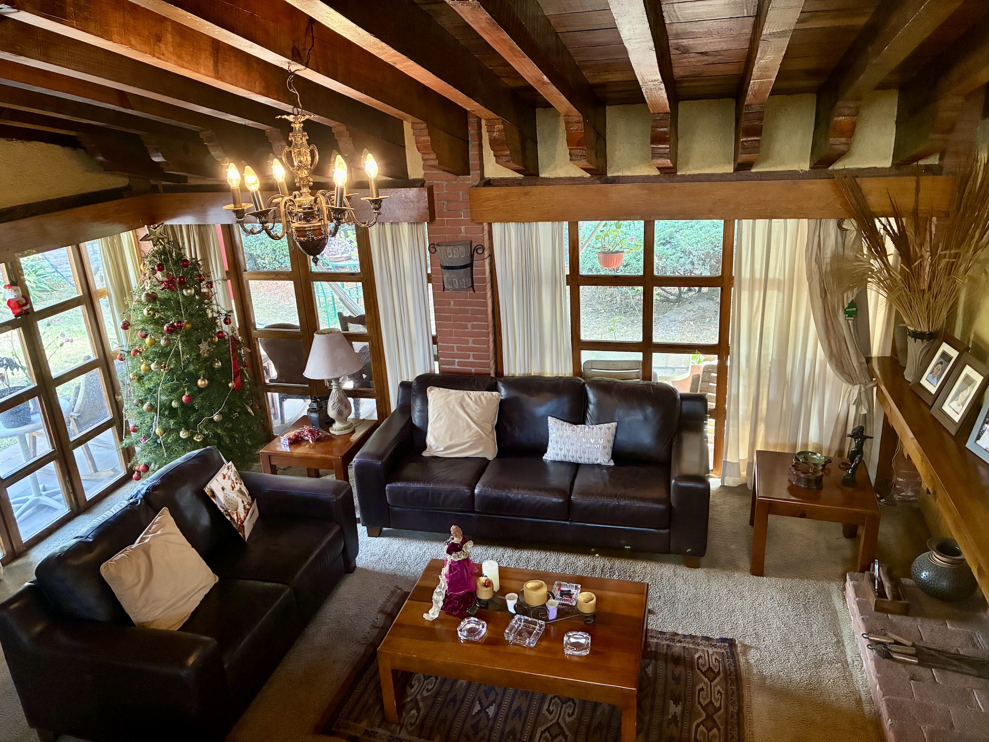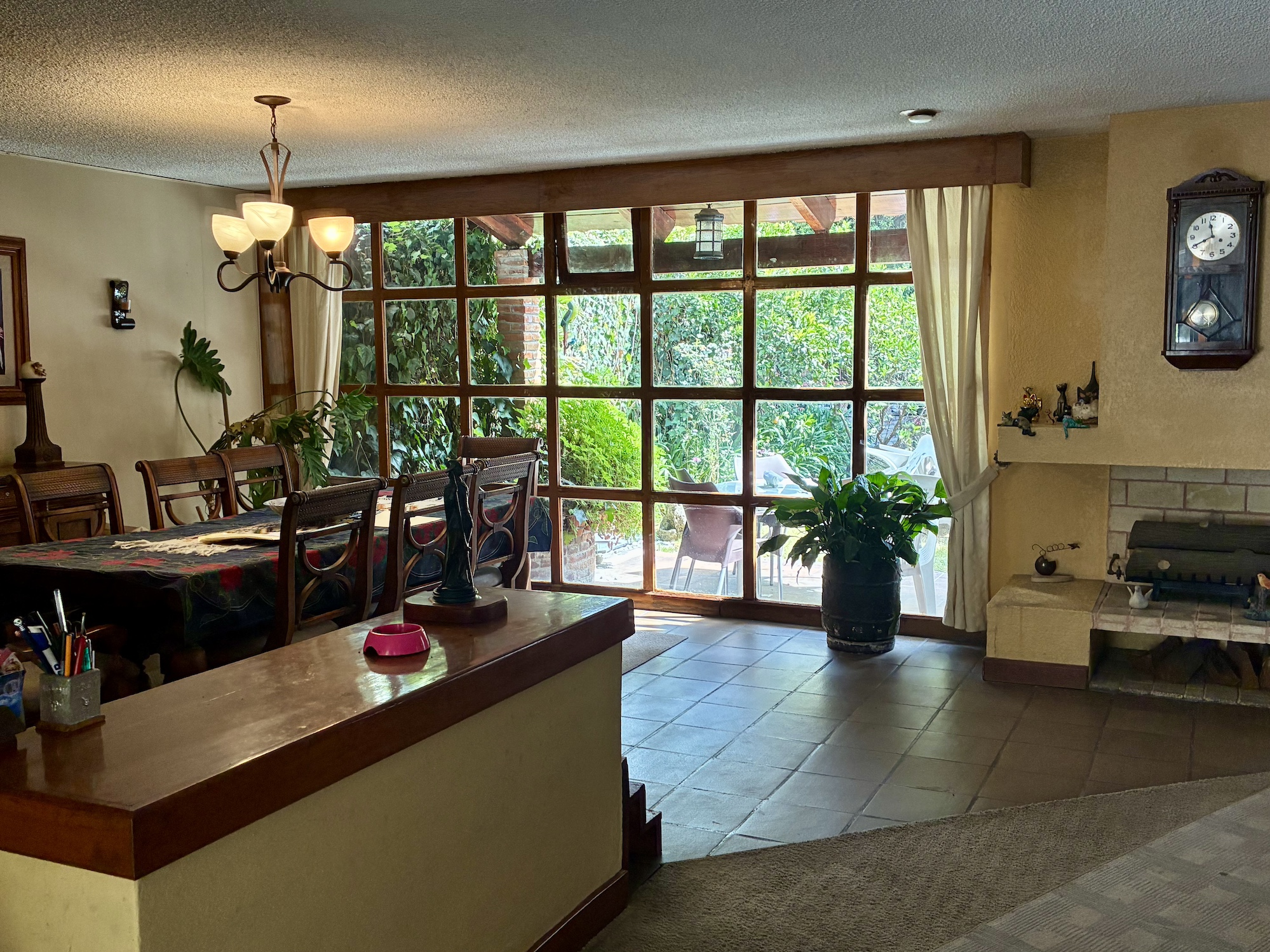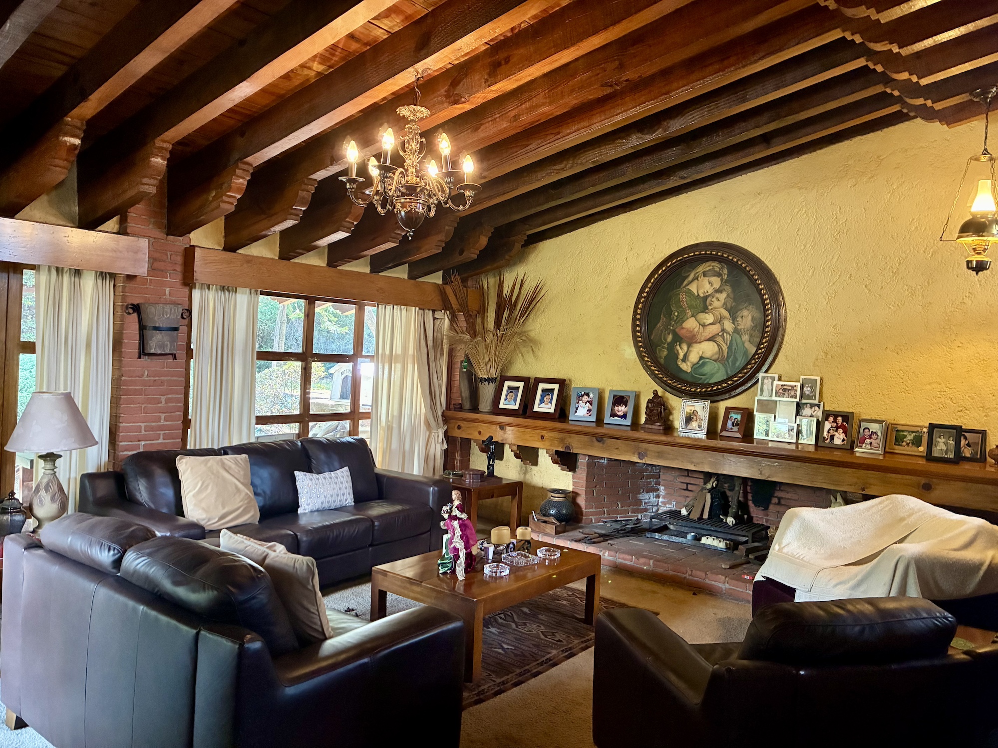 • Sala amplia con chimenea de leña y chimenea de gas