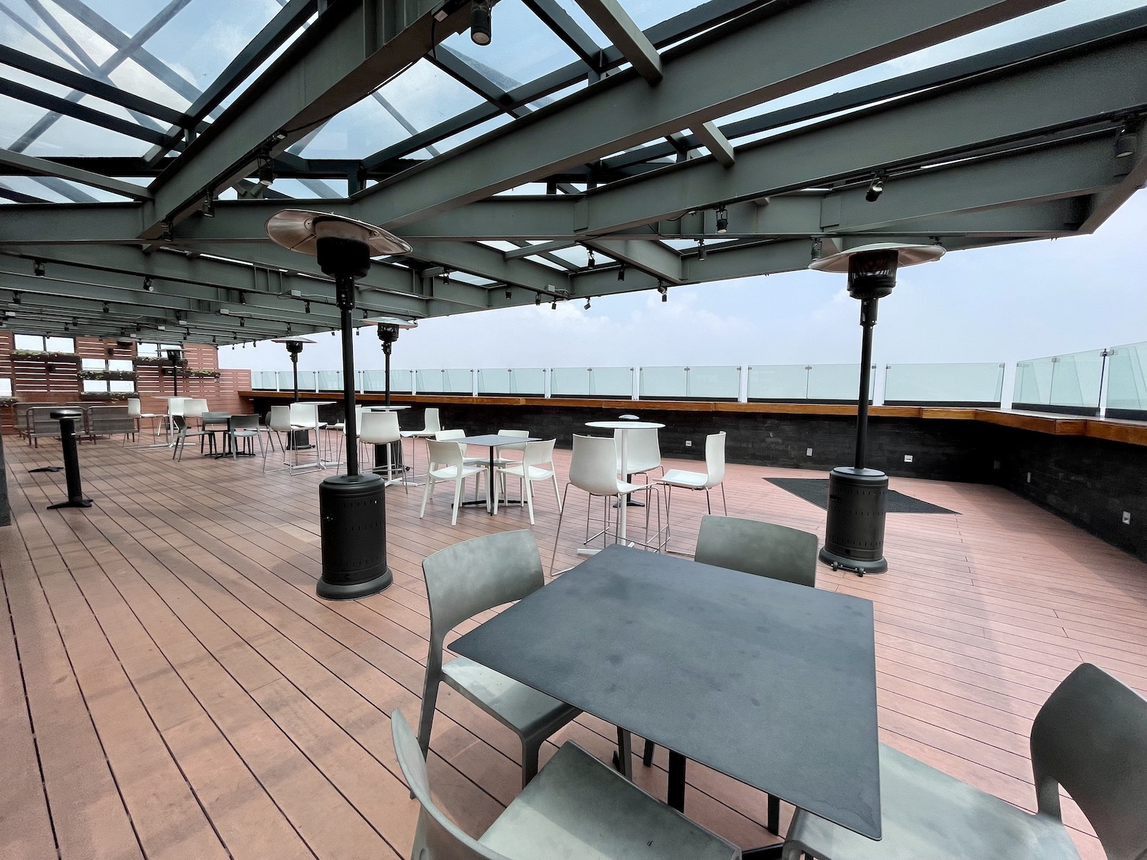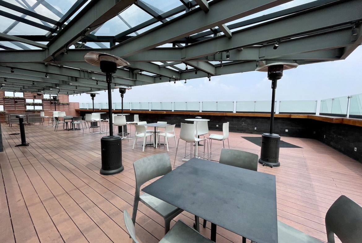 Terraza panorámica para contemplar la ciudad o disfrutar una copa al atardecer.