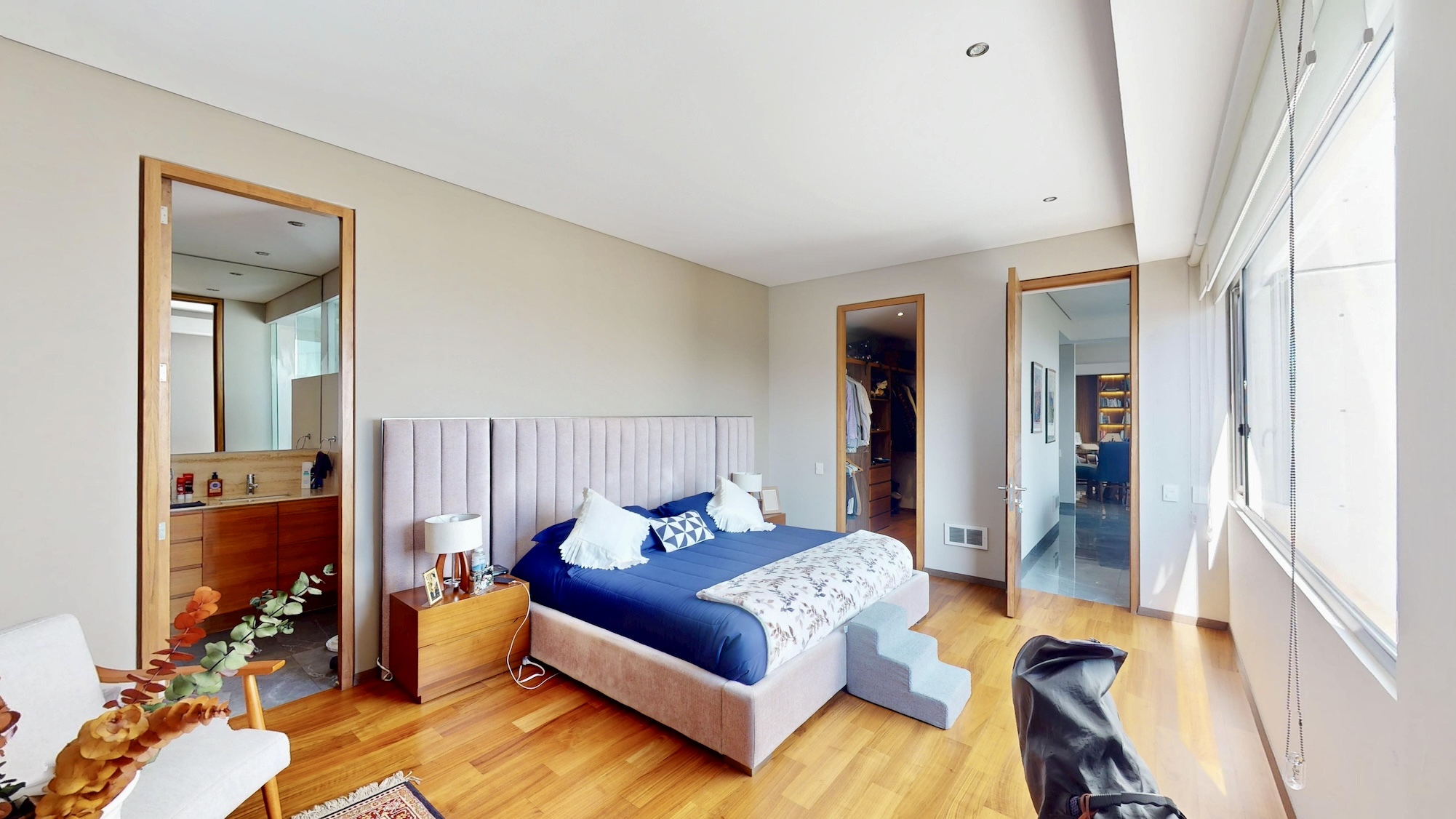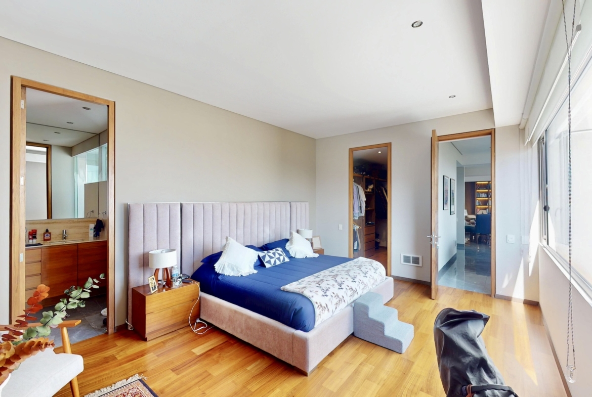 3 recámaras, cada una con baño y vestidor; la principal con gran ventanal y excelente iluminación.